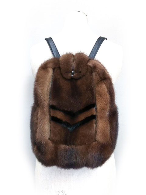 ミンクのバッグをリュックに仕立て直しました。少し分量が足りないので、当店にストックのある素材を一部使用しております。