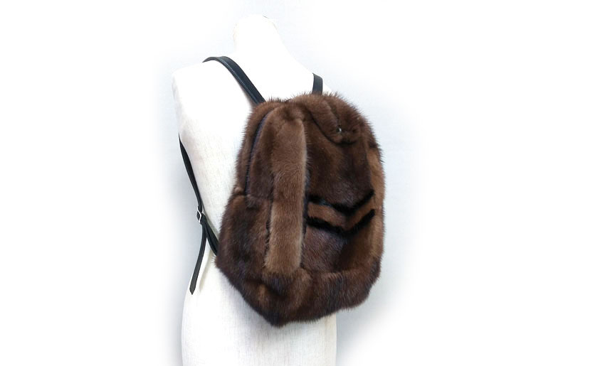 ミンクのバッグをリュックに仕立て直しました。少し分量が足りないので、当店にストックのある素材を一部使用しております。