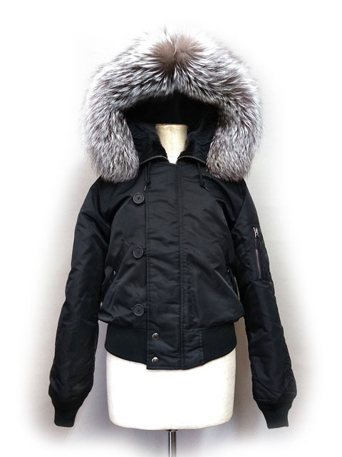 ALPHA社等は金属のドットボタン等で脱着しますが、今回のAVIREXのフェイクファーはファスナーでの脱着でした。フェイクファーのみを奇麗に外して、銀狐、シルバーフォックスのリアルファーで換装です。見た目はがらりと変わり、白黒のモノトーンですが、インパクト抜群です。