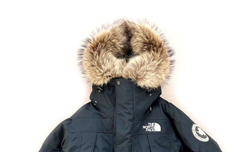 THE NORTH FACE 「ノースフェイス 」フードトリミングのフェイクファーをリアルファー、フィンランドラクーンに交換しました。ご依頼の多いお直しメニューです。肌触りの良くないフェイクファーをボリュームたっぷりのフィンランドラクーンの毛皮に交換したら、ビックリ驚くほどの存在感になります。
