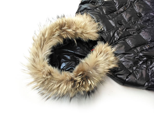 MONCLER モンクレールダウンのラクーンファー 経年劣化で破れ、破損が生じ新しいファーと交換いたしました。本体のダウンはしっかりした丁寧な縫製と堅牢な造りで長持ちしますが、ファーは残念ながら経年劣化したり、メンテンナンスを怠ったり、誤ったクリーニング等で、破れたりボロボロになったりします。