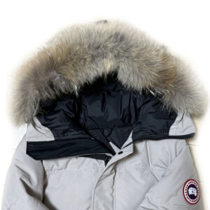 新品で買われた 「CANADA GOOSE」カナダグースのNEWモデル。一部ヘリテージモデル等を除きフードにはコヨーテのリアルファーは付いていません。フード裏側に付いている細長い布地の付いたファスナーをこのコヨーテファーパーツに使用し専用にカスタムしました。
